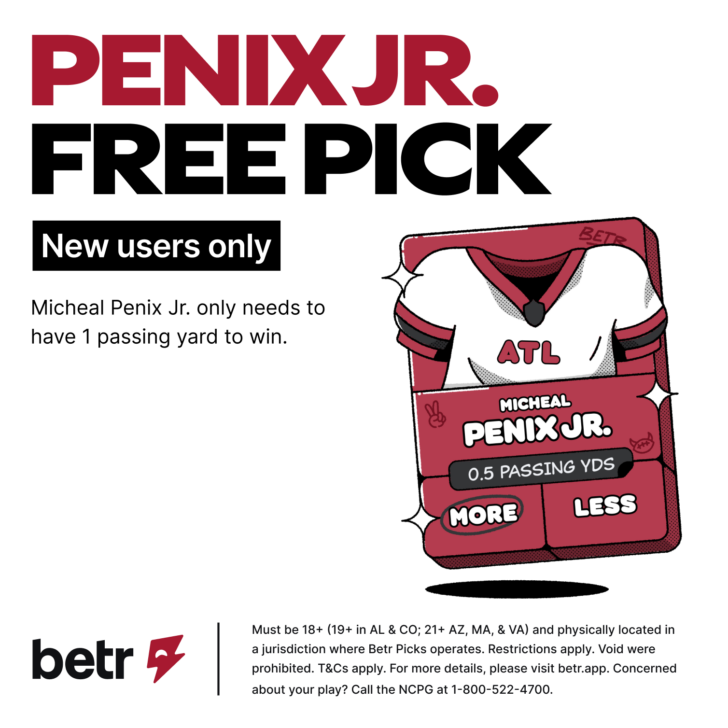 Betr is back with another can’t-miss new-user offer, and this one’s as automatic as it gets. Sign up with Betr promo code MHS3P, and you’ll unlock a FREE Penix Jr. pick where the Falcons quarterback only needs one passing yard to win. Yes, seriously, just 1 yard.