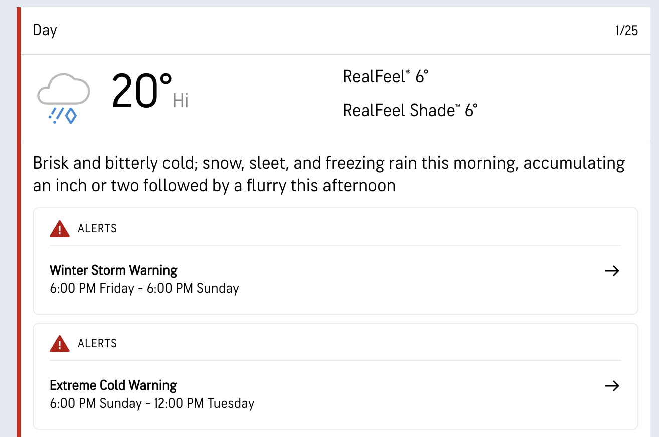 While the actual volume of snow in Memphis doesn’t seem to be the issue (at least from this Coloradan) the freezing cold and ice in a southern environment can make for extremely hazardous traveling and road conditions. Data from AccuWeather shows high humidity, a temperature that feels like 5 degrees Fahrenheit, and both winter storm and extreme cold warnings. That’s unexpected (and very unwelcome) for a southern city like Memphis.